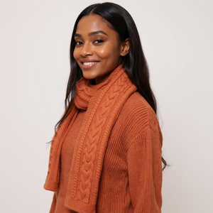 Turn heads this season with our Vibrant Orange Cozy Knit Scarf. Crafted from a soft, insulating knit, it keeps you warm and comfortable while adding an instant burst of color to any outfit. The lively orange tone is perfect for brightening up darker winter ensembles or adding playful contrast to classic neutrals. Lightweight yet warm, this scarf is easy to style in multiple ways—whether draped over your shoulders, looped around your neck, or tucked under a jacket for extra coziness.