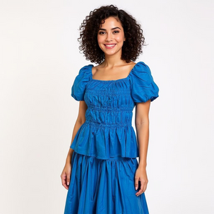 Crafted from breathable 100% cotton, this elegant blue pleated skirt features a flattering gathered waist and timeless silhouette. Its lightweight design makes it perfect for warmer days, while the classic pleats add a touch of sophistication to any outfit. Dress it up with a blouse or keep it casual with a tee — this skirt transitions seamlessly from day to night.