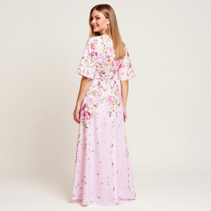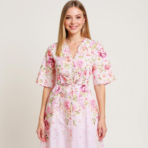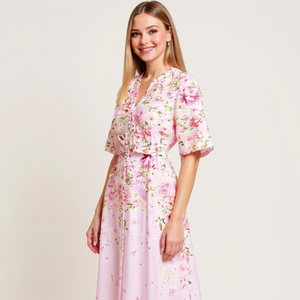 Graceful and feminine, this beautifully crafted long dress is made from a soft blend of 82% viscose and 18% nylon. Featuring delicate floral designs and elegant elbow-length sleeves, it’s the perfect choice for special occasions, events, and parties.