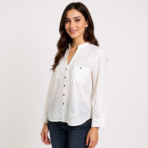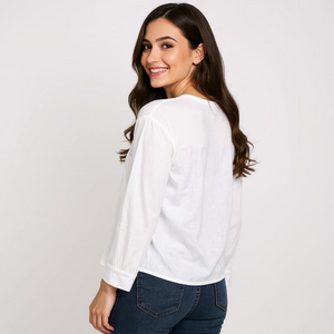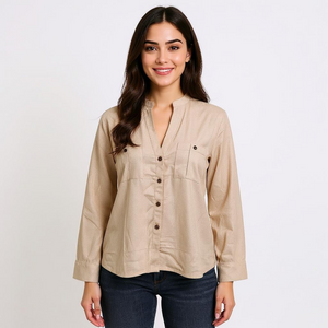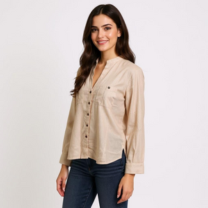 Ladies Long Sleeve Top – Linen Blend Effortlessly chic and breathable, this long sleeve top is crafted from a luxurious blend of 55% linen and 45% viscose. The fabric offers a light, airy feel with a soft drape — perfect for staying cool and stylish from day to night.