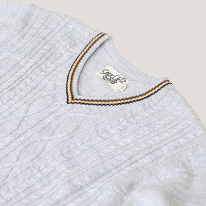 Men’s Light Grey V-Neck Sweater Add a touch of refined simplicity to your wardrobe with this light grey V-neck sweater. Designed with a clean vertical rib-knit pattern, this sweater offers a modern yet timeless look. The slim fit enhances your silhouette, while the soft and breathable knit fabric keeps you comfortable all day. Ideal for layering or wearing on its own. Perfect For: Office wear, casual dinners, or weekend layering.