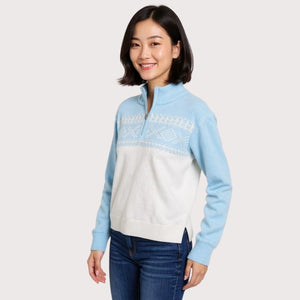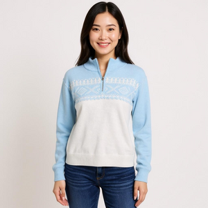 Sky Blue Zipper Ladies Sweater – 100% Acrylic